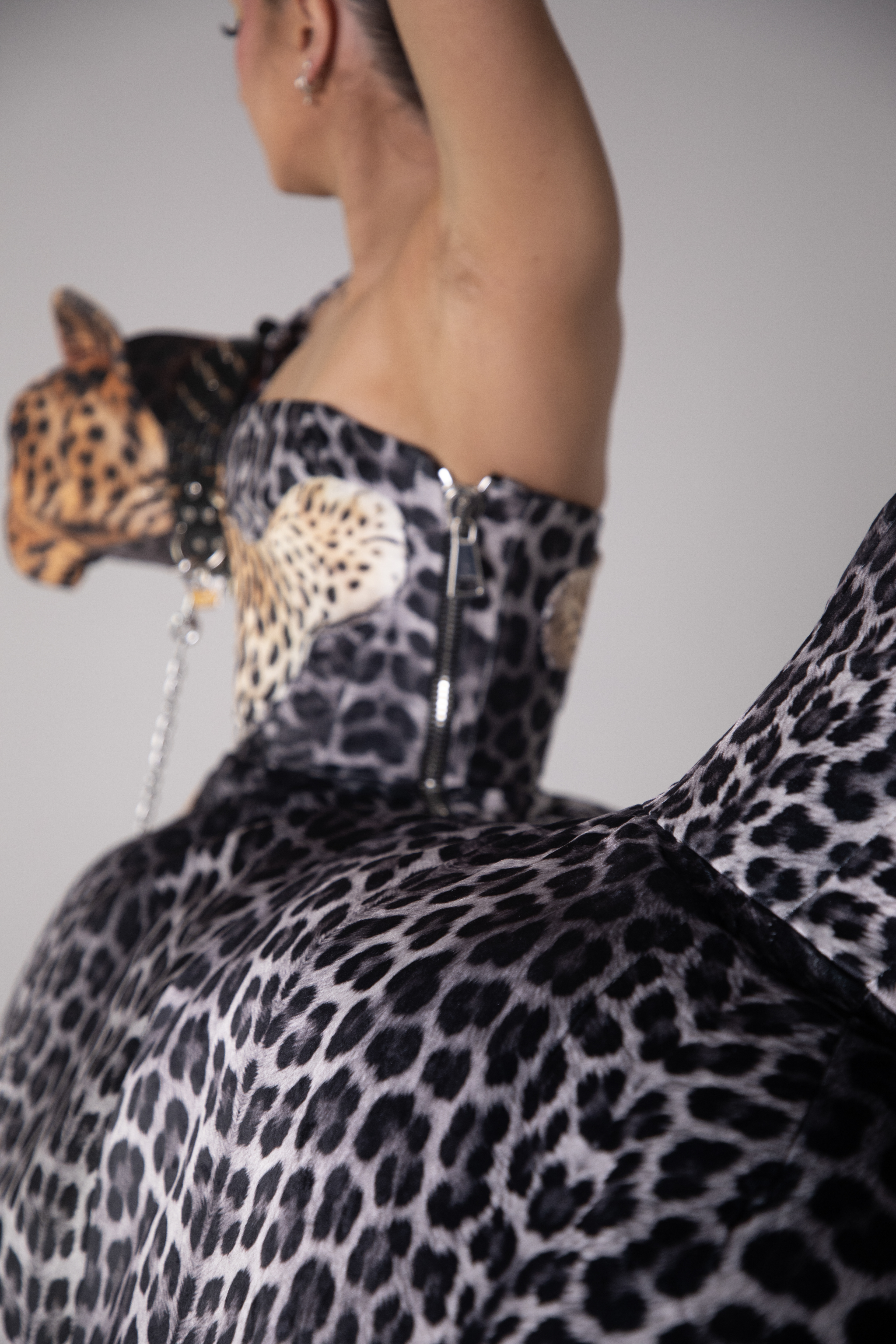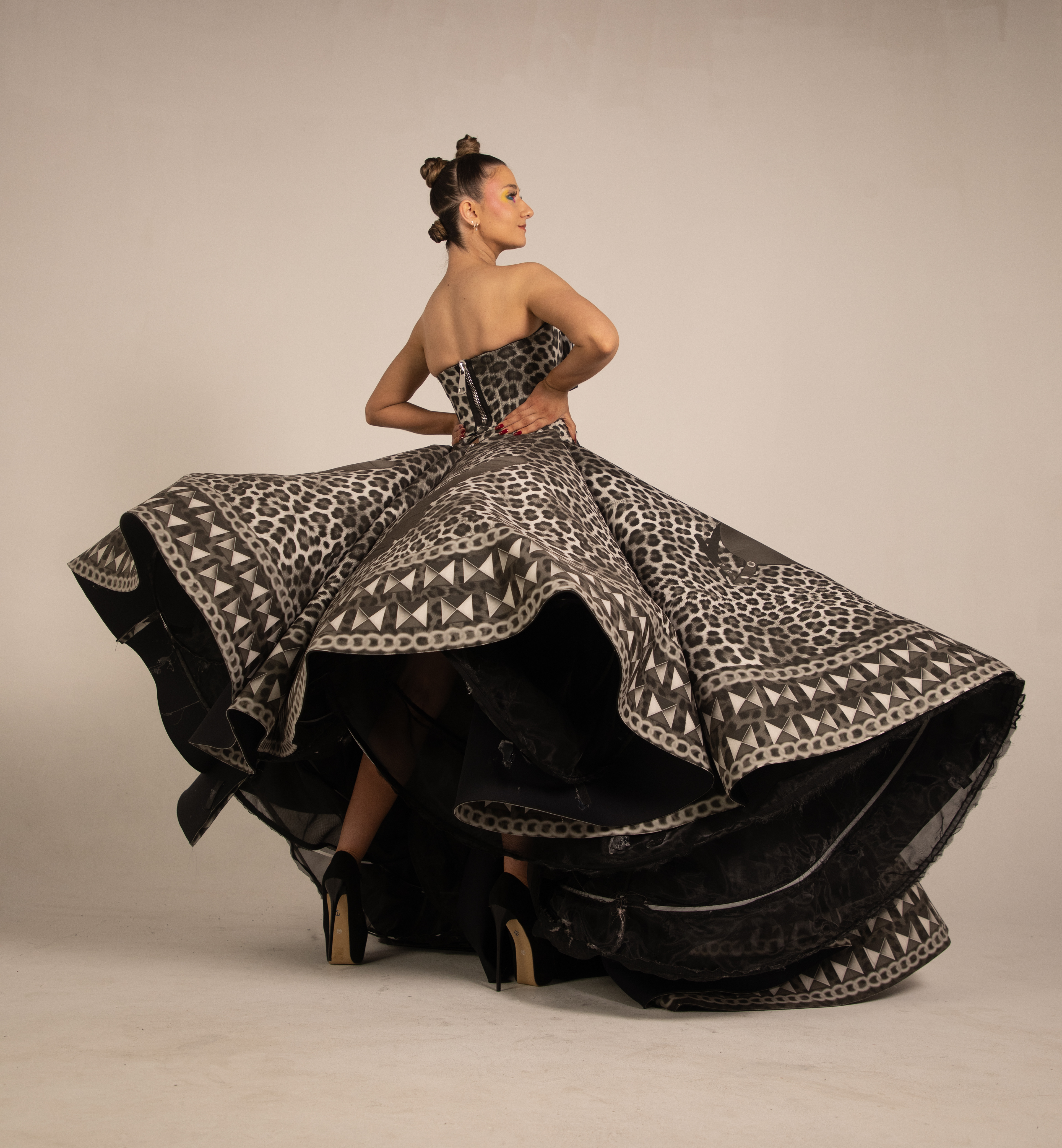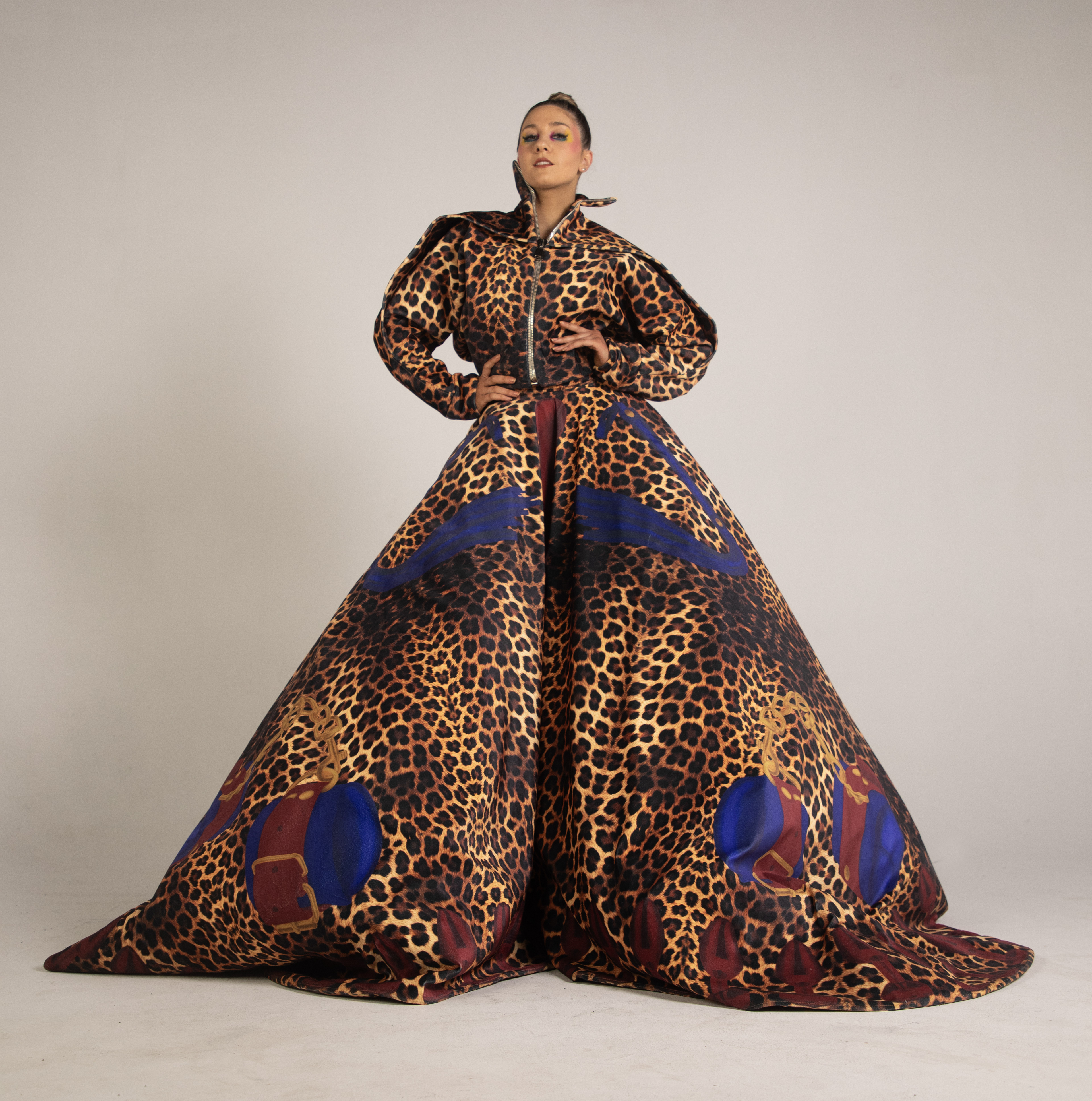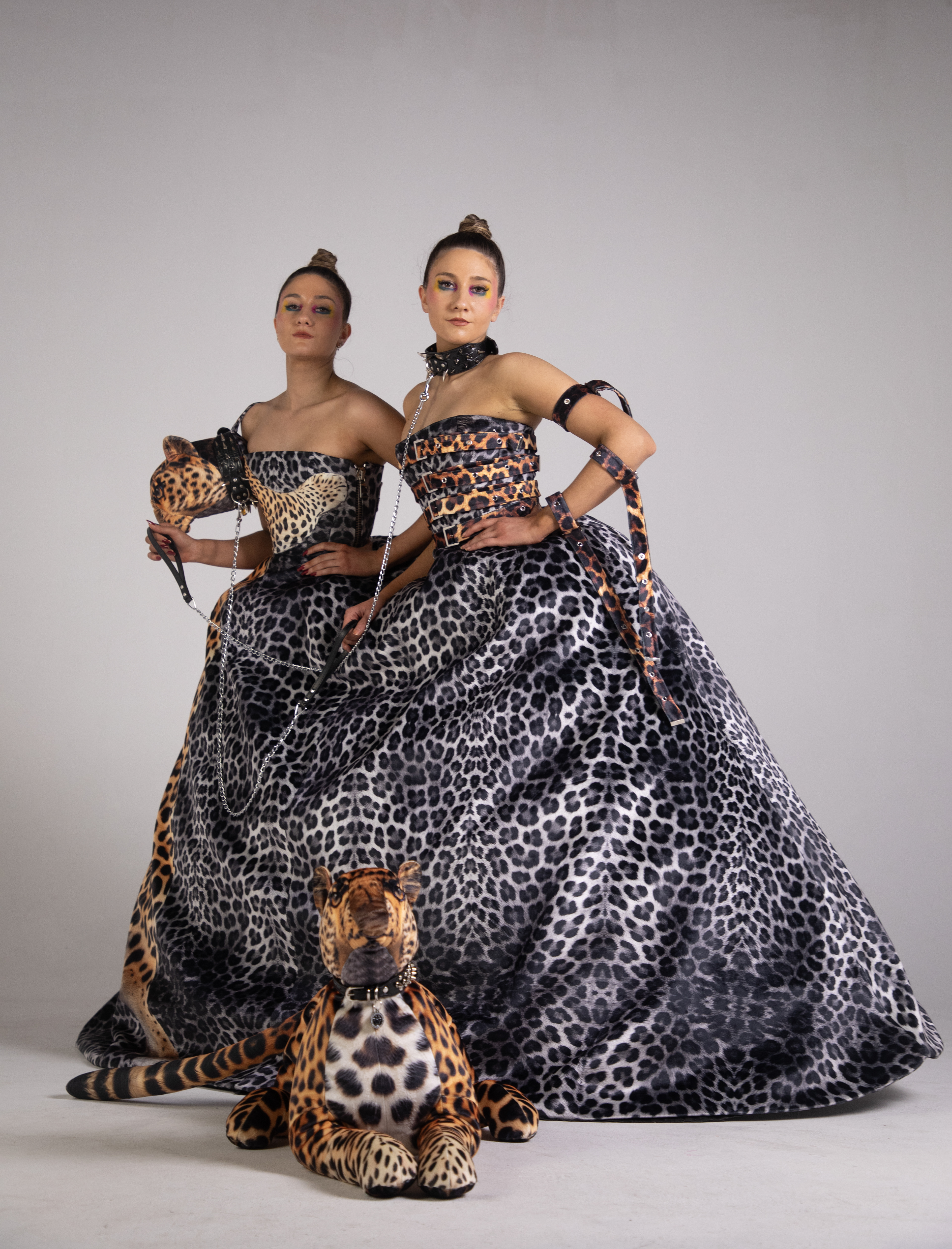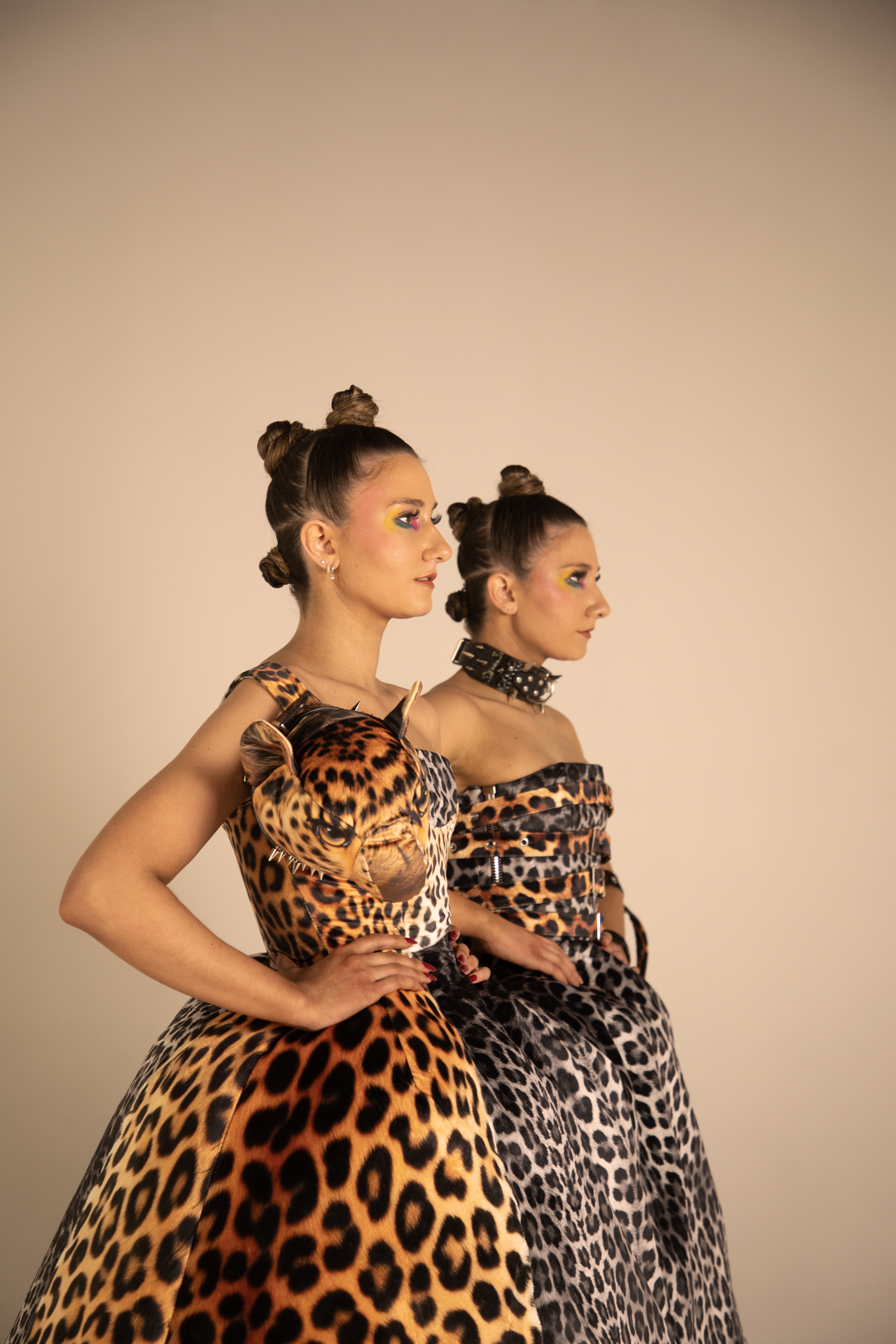 Drawing inspiration from the iconic silhouettes of 1950s to todays current couture, this collection honours the timeless elegance of these era’s while infusing it with a contemporary twist. The dresses are designed to capture the essence of classic femininity—cinched waists, flowing lines, and playful volumes—while incorporating daring elements like eye-catching leopard and animal prints. These prints not only add visual intrigue but also represent a fierce reclamation of personal power and confidence.