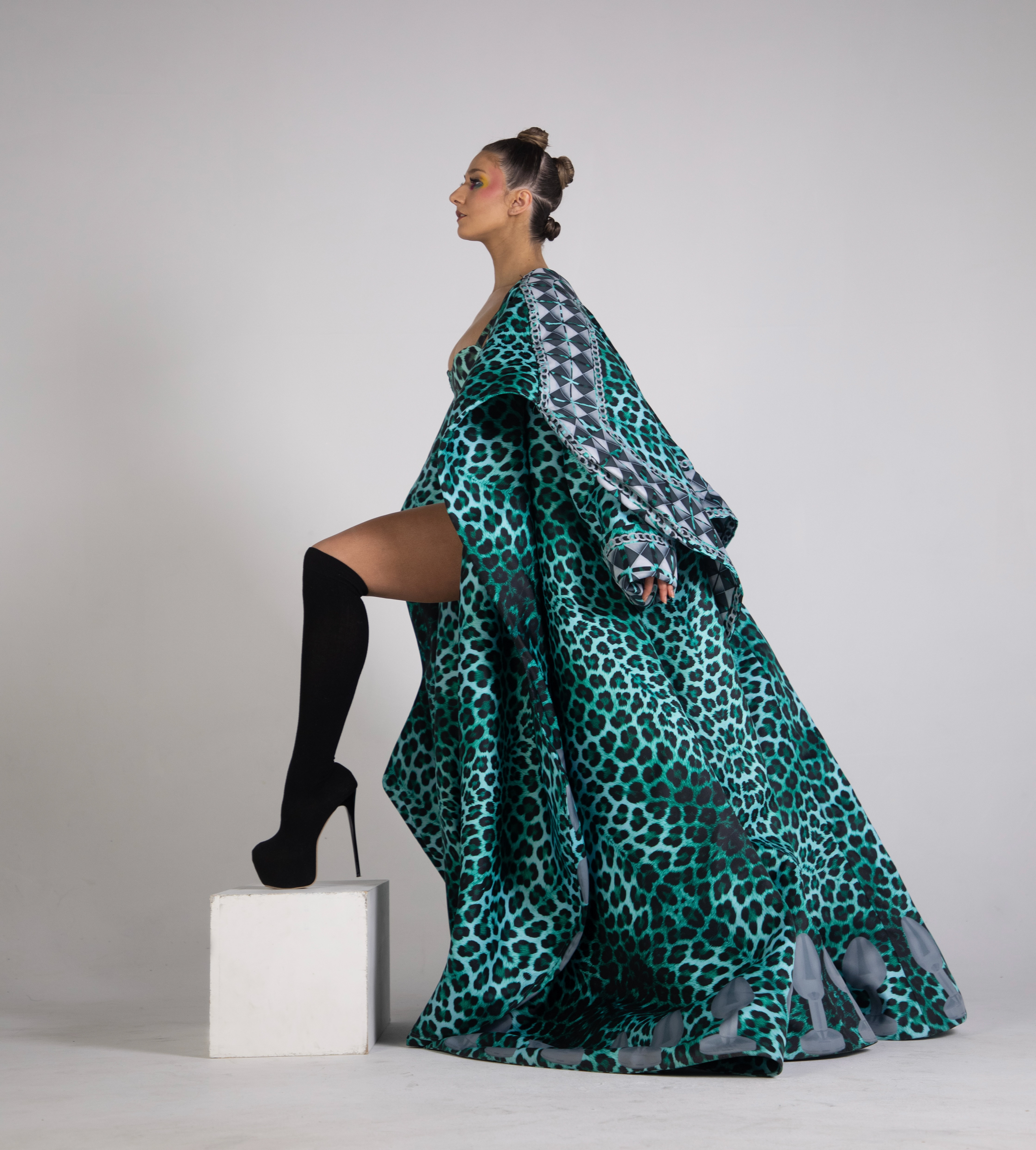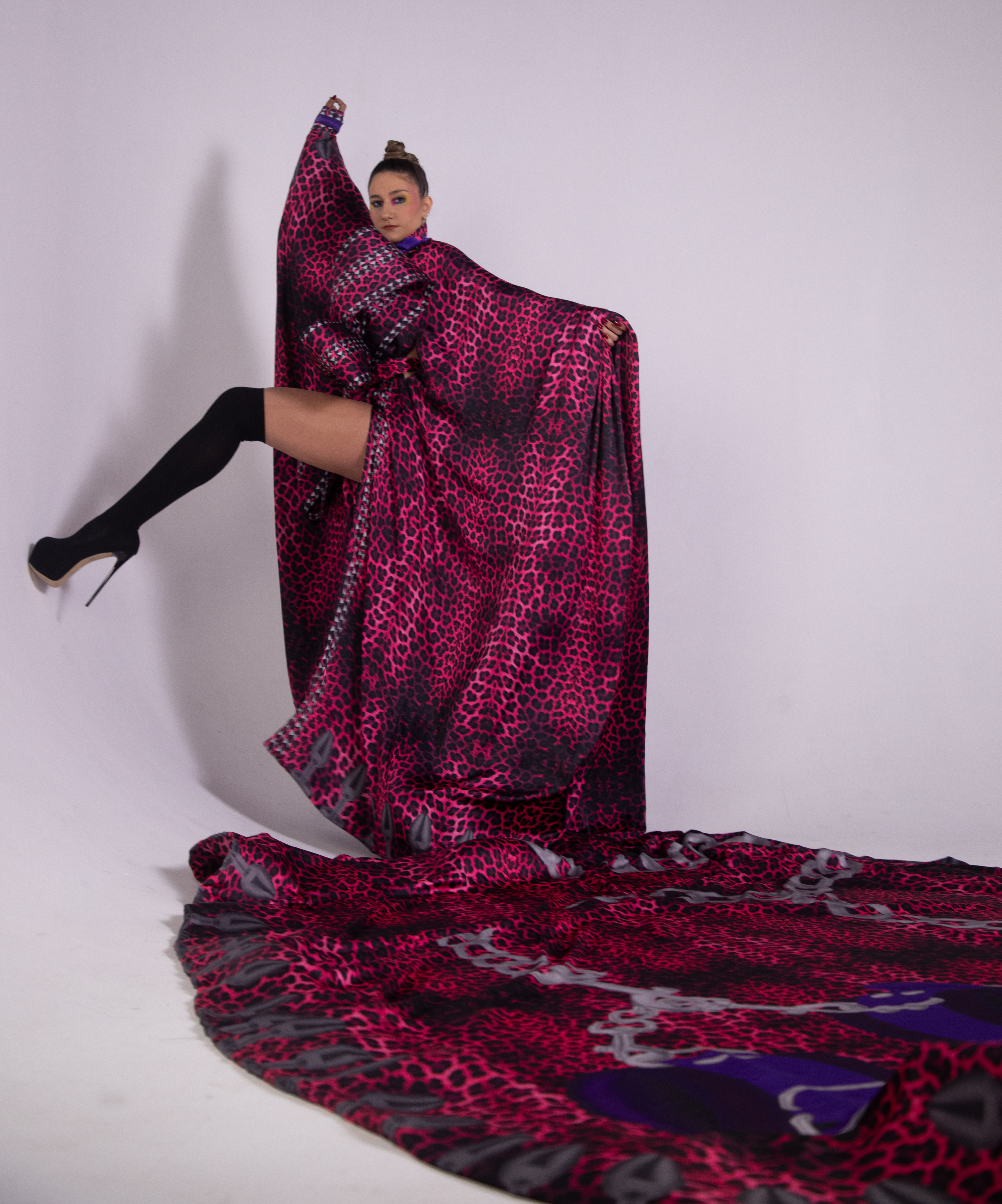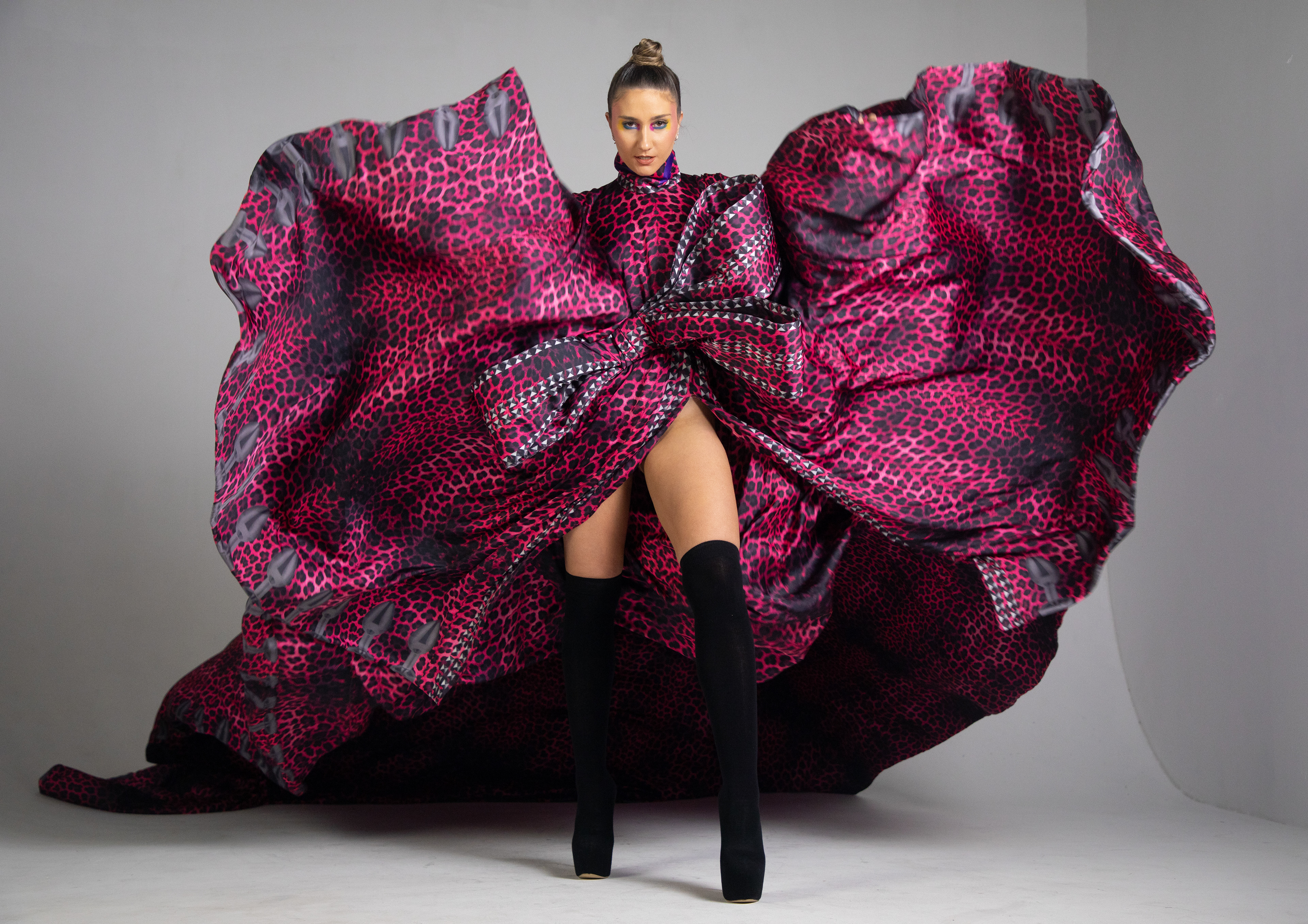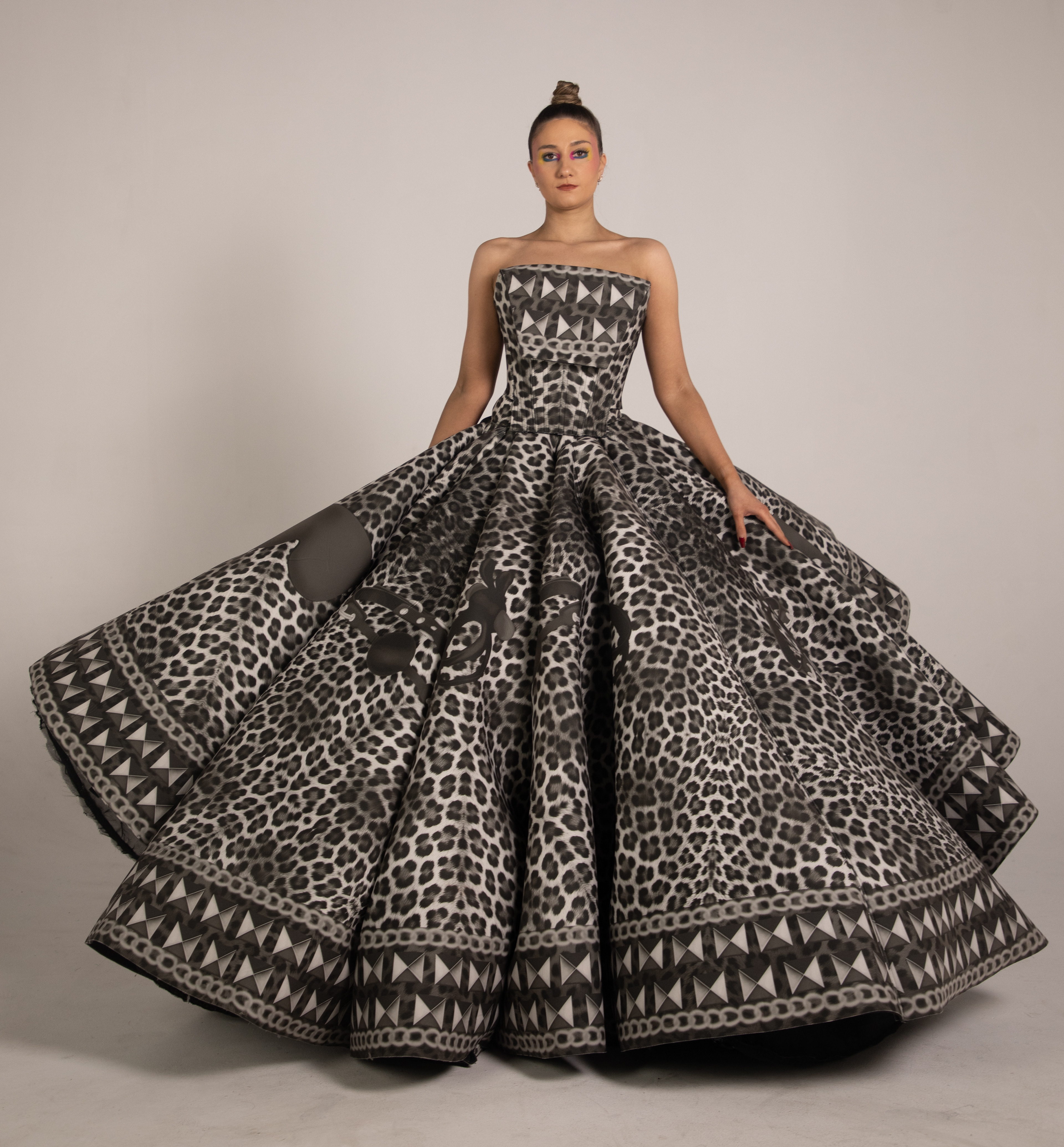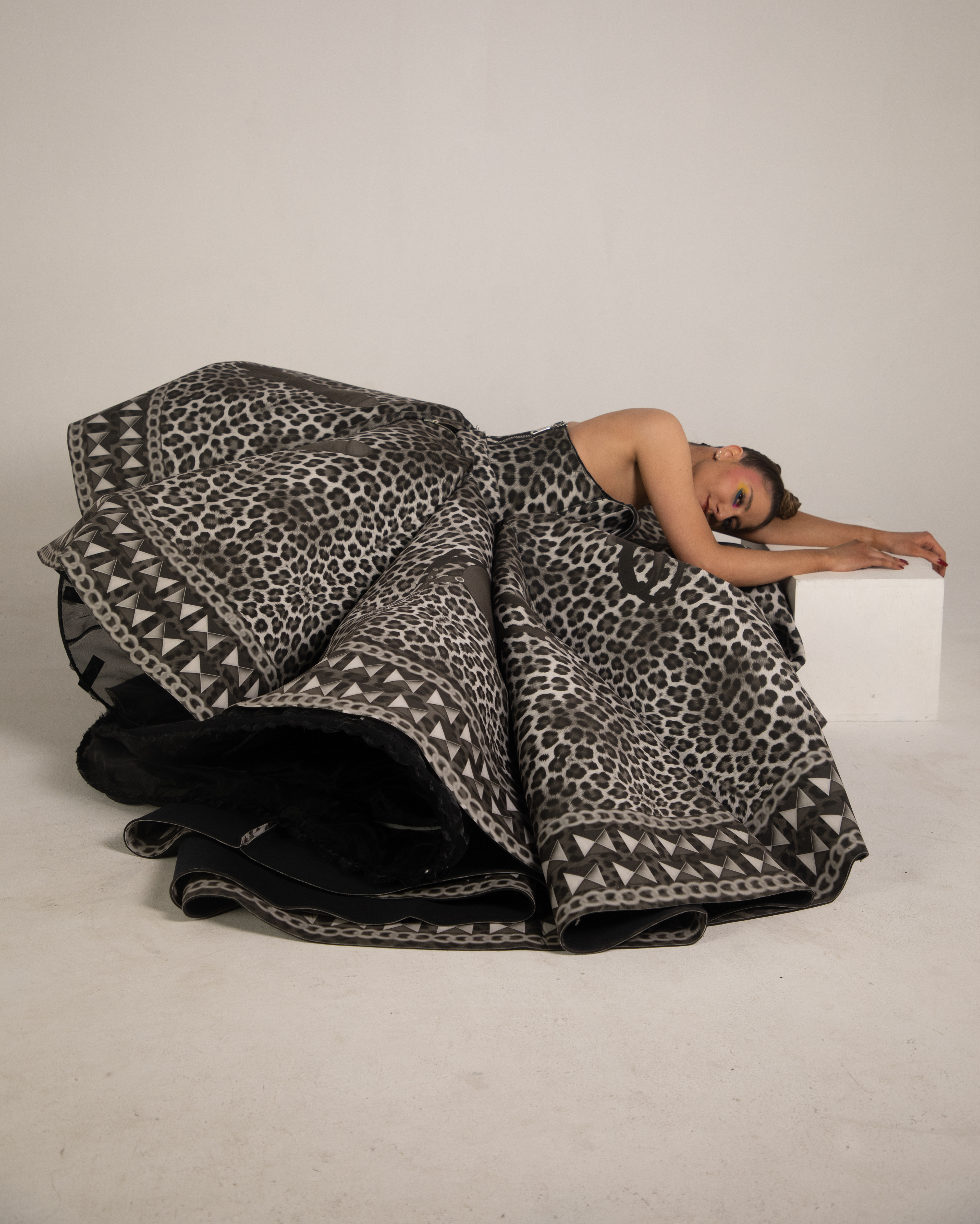 Drawing inspiration from the iconic silhouettes of 1950s to todays current couture, this collection honours the timeless elegance of these era’s while infusing it with a contemporary twist. The dresses are designed to capture the essence of classic femininity—cinched waists, flowing lines, and playful volumes—while incorporating daring elements like eye-catching leopard and animal prints. These prints not only add visual intrigue but also represent a fierce reclamation of personal power and confidence.