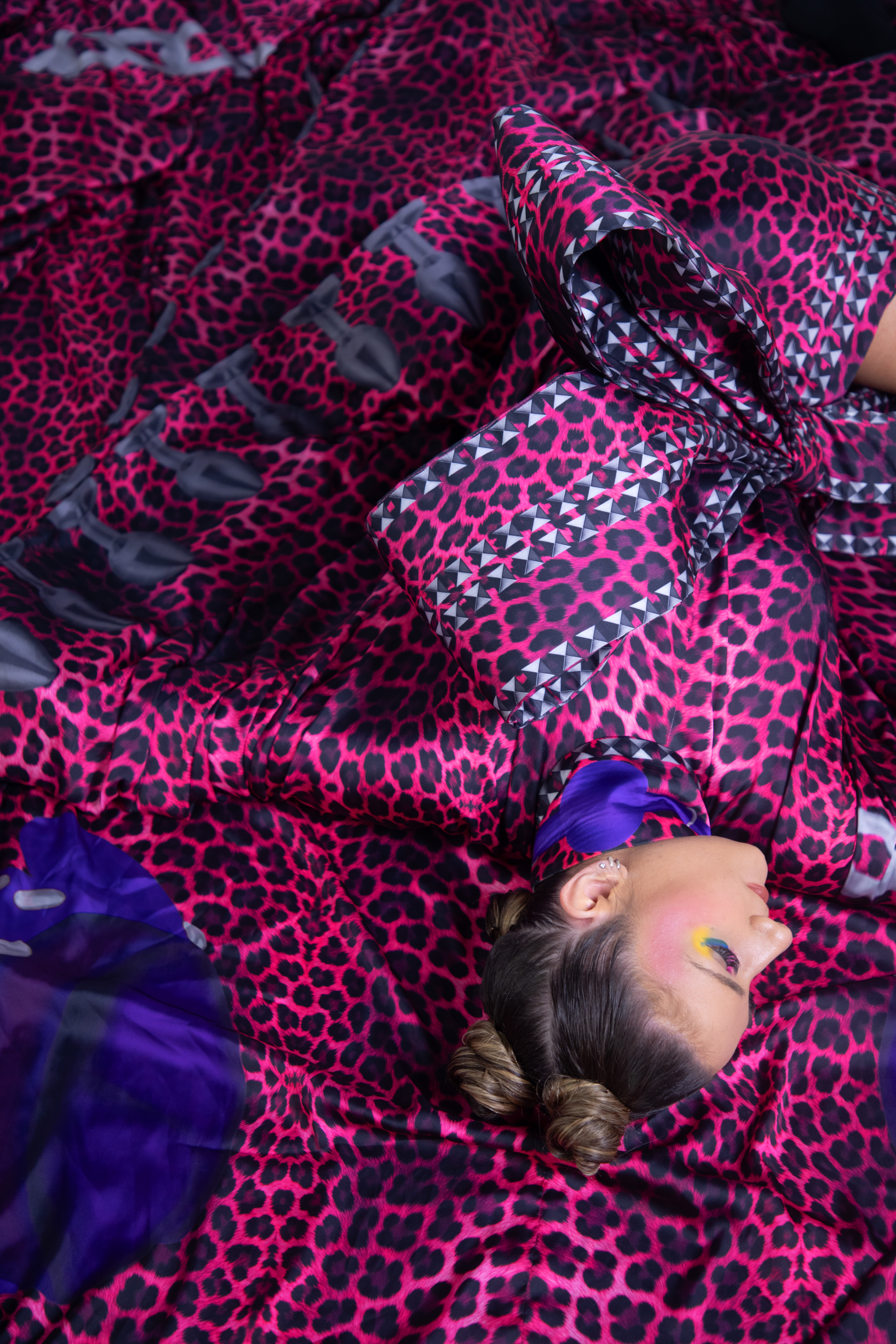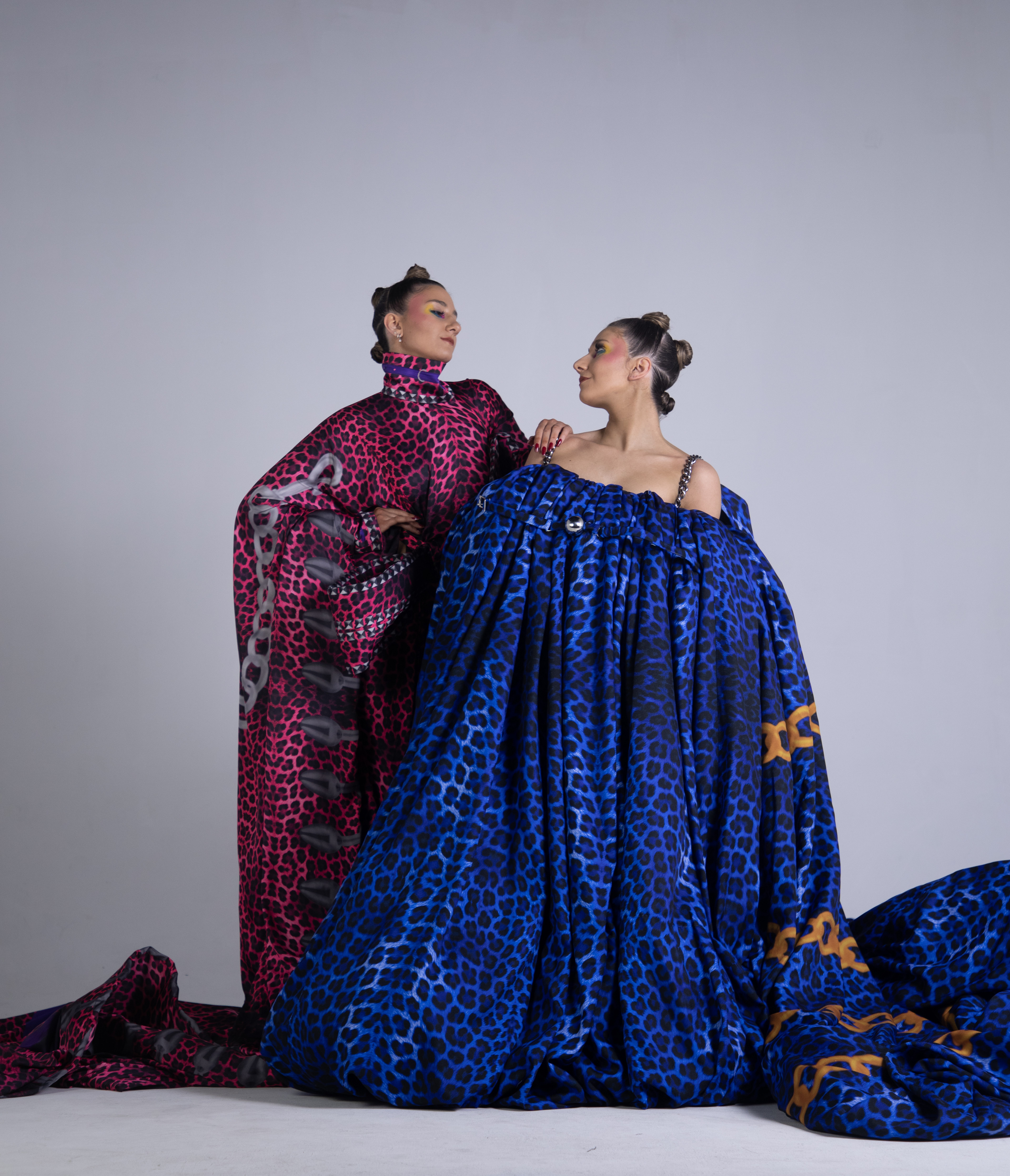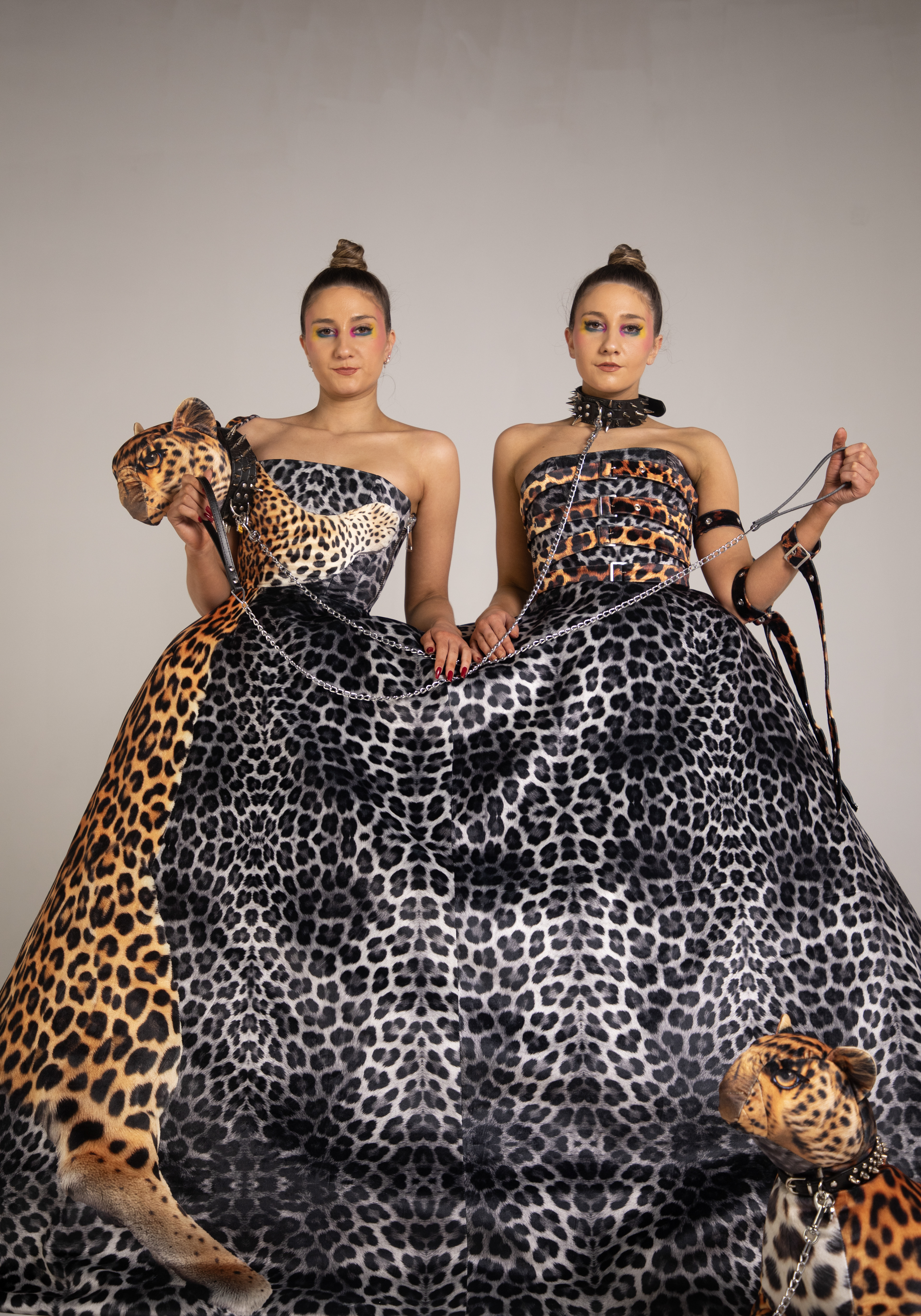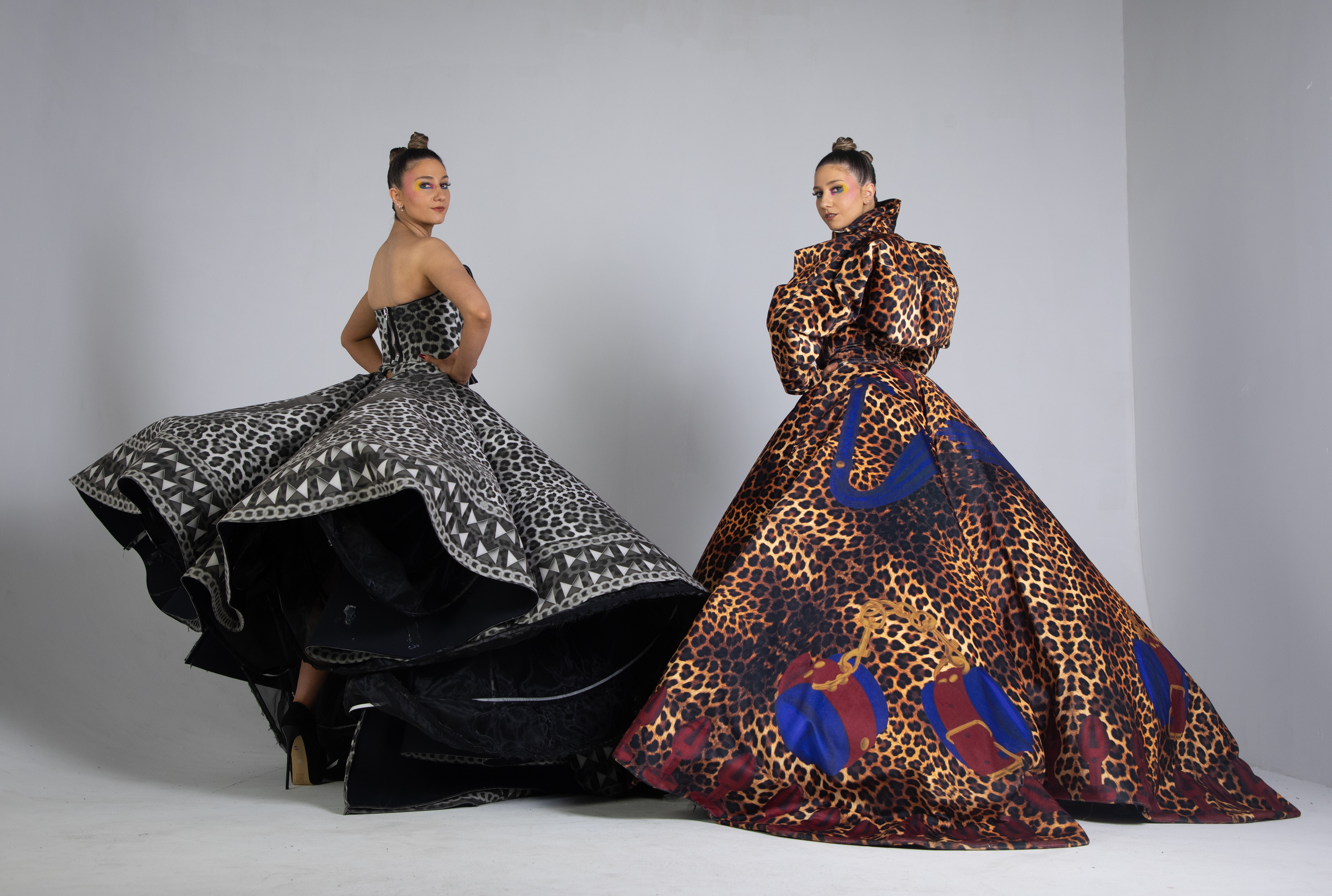 “Round 2“ is a revolutionary fashion collection that redefines the relationship between power, femininity, and couture. At its heart are seven distinctive bodies, each embodying a unique narrative that challenges traditional norms and invites a bold exploration of identity. Each look is anchored with the striking pattern of leopard print and meticulously placed sex toys. These qualities are an emblem of sophistication and authority that unveils a vibrant, attention-grabbing dress that bursts with character and colour, symbolising the liberation of self-expression.