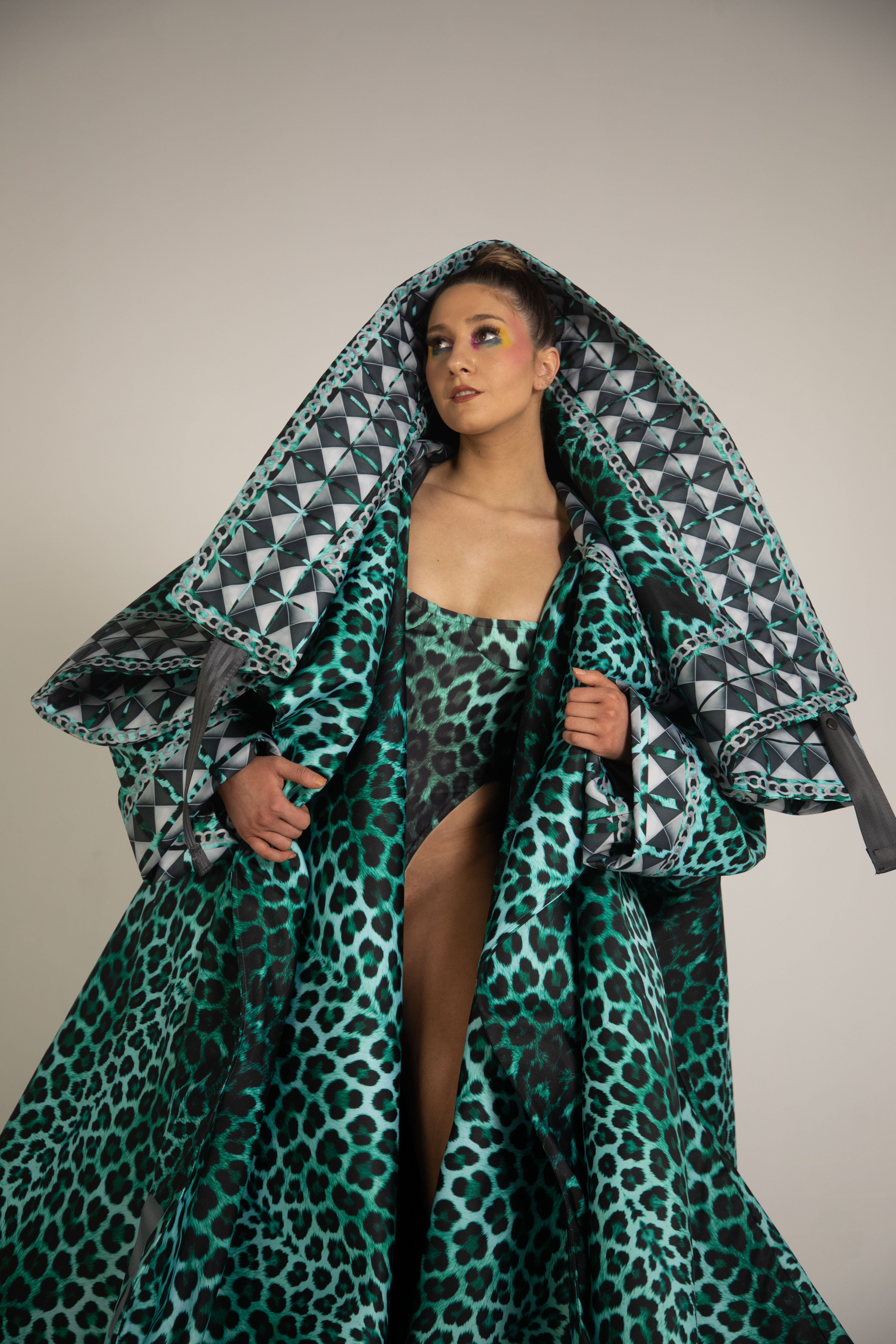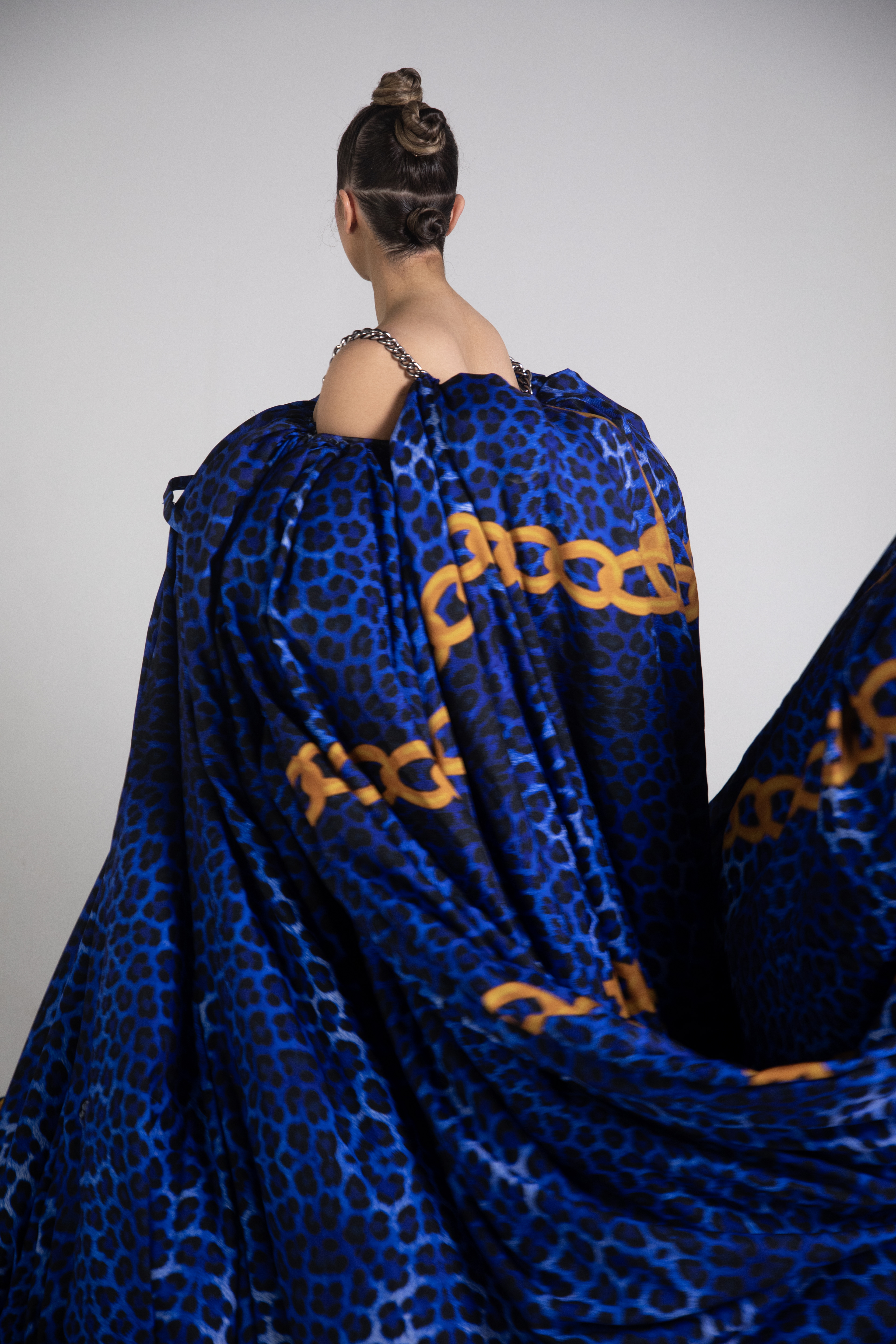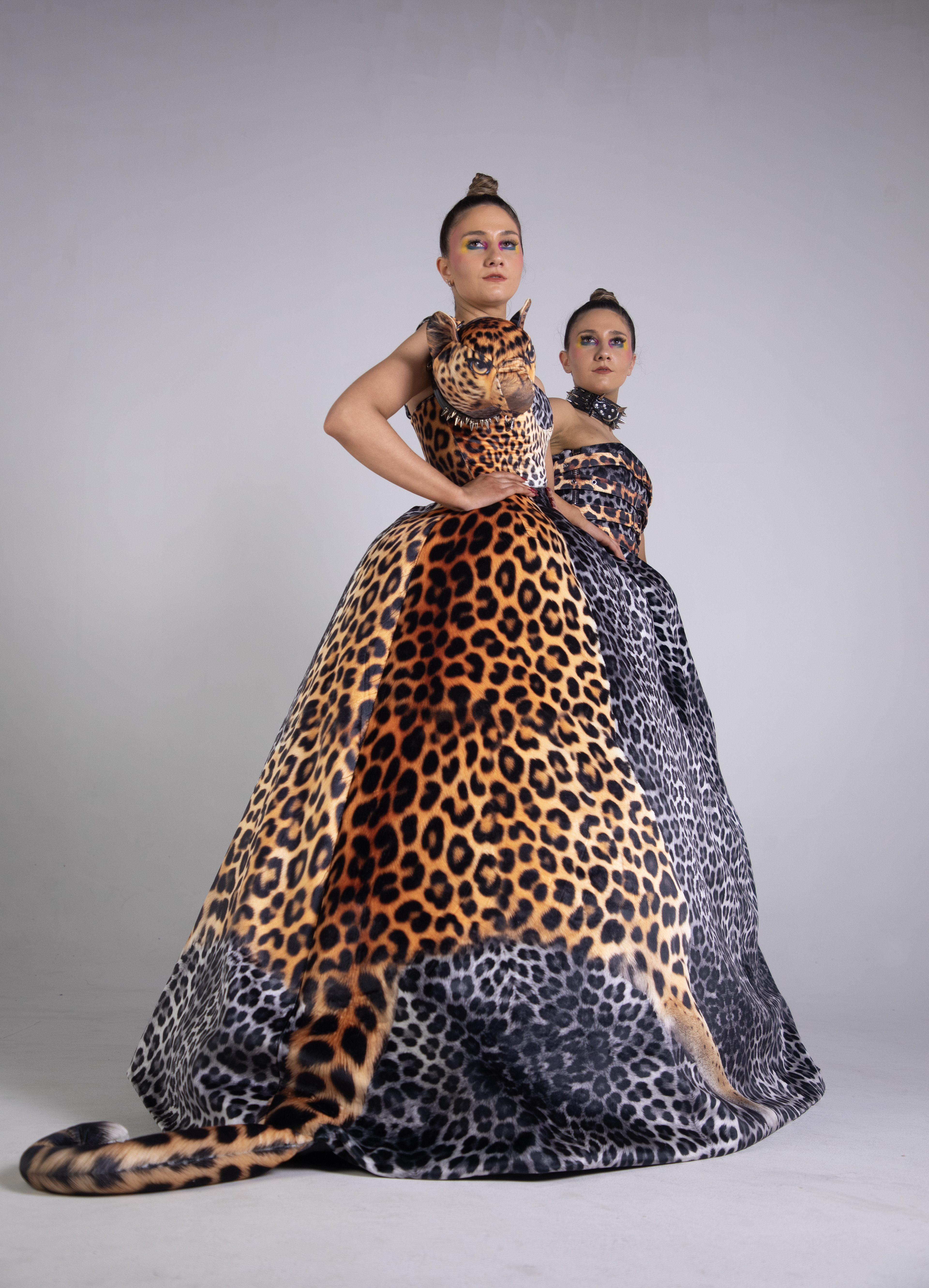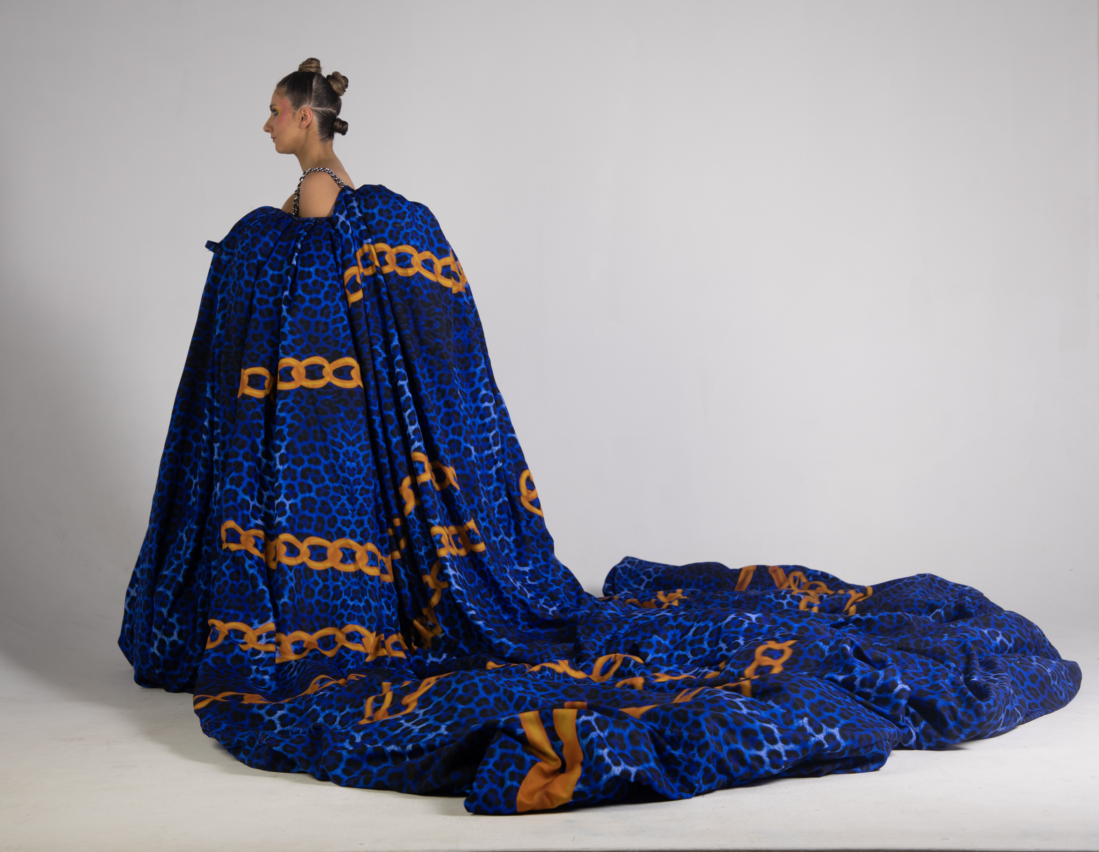 “Round 2“ is a revolutionary fashion collection that redefines the relationship between power, femininity, and couture. At its heart are seven distinctive bodies, each embodying a unique narrative that challenges traditional norms and invites a bold exploration of identity. Each look is anchored with the striking pattern of leopard print and meticulously placed sex toys. These qualities are an emblem of sophistication and authority that unveils a vibrant, attention-grabbing dress that bursts with character and colour, symbolising the liberation of self-expression.